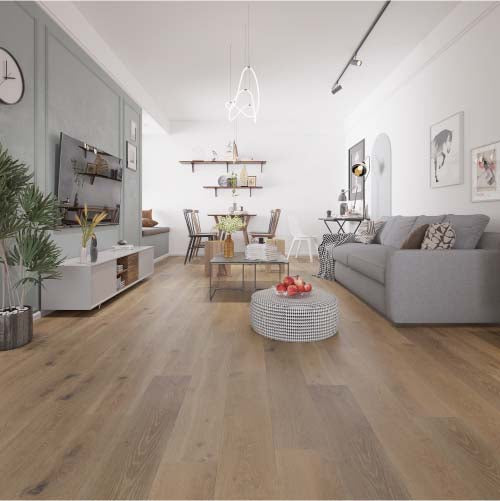 Inspired by the breathtaking Skyline Trail in Jasper National Park, the Skyline Collection is a masterpiece in engineered hardwood flooring that seamlessly blends nature's beauty with urban sophistication. Crafted with precision and innovation, each plank embodies the timeless elegance of hardwood, combining durability with an aesthetic that resonates with both nature lovers and urban dwellers alike. The rich, warm tones of the wood evoke the natural hues found along the Skyline Trail, while the engineered construction ensures stability and resilience in any environment. The Skyline Collection, where the spirit of nature meets the sophistication of contemporary design